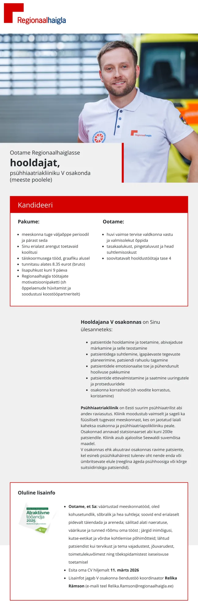 Regionaalhaigla on Eesti tipphaigla, mille põhiväärtused on pühendumine ja professionaalsus, hoolivus ja vastutustundlikkus, avatus ja koostöövalmidus. Oleme Eesti juhtiv tervishoiuasutus ja tervishoiusektori innovatsiooni eestvedaja, kes vastutab Põhja-Eesti ja saarte elanike meditsiinilise turvalisuse eest. Regionaalhaigla grupis töötab patsientide heaks ligi 5000 inimest – meie meeskonda kuuluvad arstid, õed, hooldajad ja muude erialade spetsialistid. Arste on meil üle 500, lisaks praktiseerib Regionaalhaiglas pidevalt ka enam kui sada arsti-residenti.