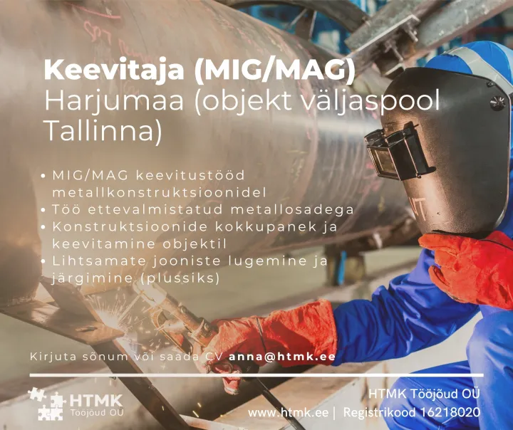 Kui oled kogenud keevitaja ja otsid uut väljakutset, siis ootame sinu kandideerimist Kandideeri.ee kaudu. Liitu projektidega, kus sinu oskused on päriselt väärtustatud.