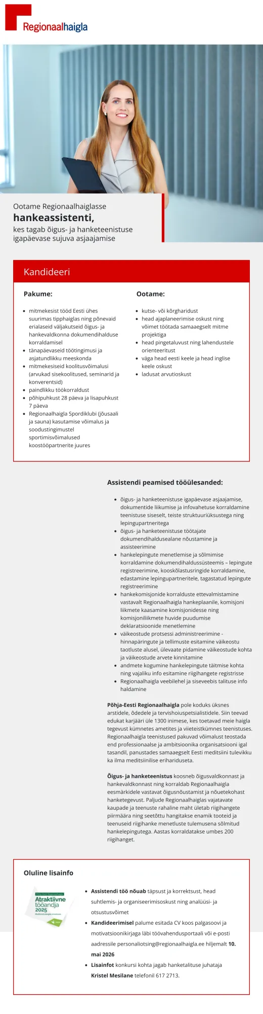 Regionaalhaigla on Eesti tipphaigla, mille põhiväärtused on pühendumine ja professionaalsus, hoolivus ja vastutustundlikkus, avatus ja koostöövalmidus. Oleme Eesti juhtiv tervishoiuasutus ja tervishoiusektori innovatsiooni eestvedaja, kes vastutab Põhja-Eesti ja saarte elanike meditsiinilise turvalisuse eest. Regionaalhaigla grupis töötab patsientide heaks ligi 5000 inimest – meie meeskonda kuuluvad arstid, õed, hooldajad ja muude erialade spetsialistid. Arste on meil üle 500, lisaks praktiseerib Regionaalhaiglas pidevalt ka enam kui sada arsti-residenti.